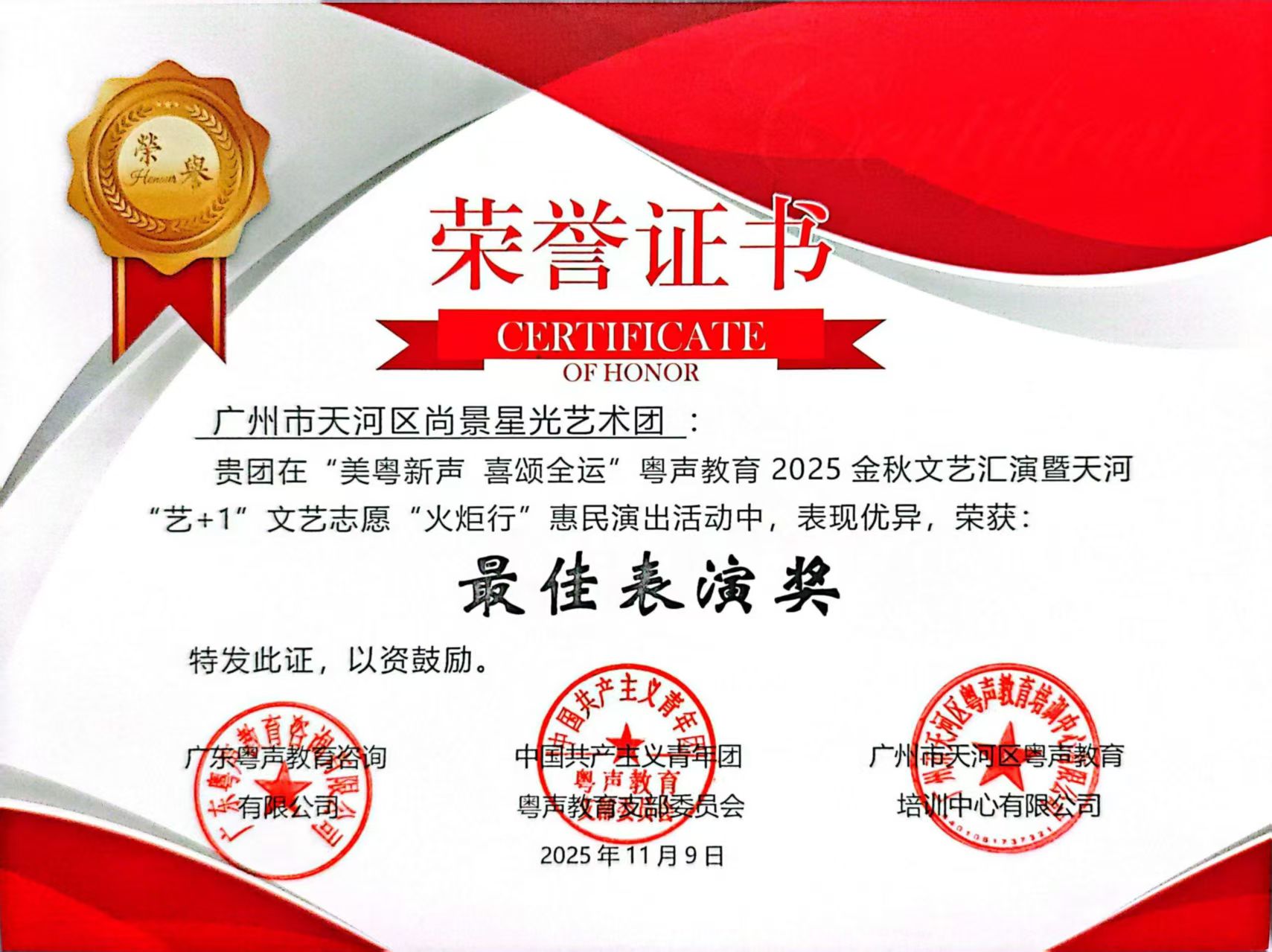 粤之声尚景星光艺术团简介 粤韵悠扬,星光闪耀;尚景相聚,艺暖岁月。粤之声尚景星光艺术团是一支扎根社区、深耕热爱的文艺团体,汇聚了一群怀揣艺术热忱的中老年爱好者,以“老有所学、老有所乐、老有所为”为初心,在舞台上绽放银发风采,为生活注入艺术温度。 团内人才济济、氛围温馨,涵盖合唱、舞蹈、戏曲、器乐等多个艺术门类,成员们虽来自不同职业背景,却因共同的热爱凝心聚力。在这里,没有专业门槛的隔阂,只有互帮互学的热忱——老团员传帮带、新成员勤钻研,从基础发声、形体训练到节目编排,每一个细节都反复打磨;从经典粤曲、红歌合唱到原创舞蹈,每一段表演都饱含深情。大家不计得失、风雨无阻,用坚持诠释对艺术的追求,用默契凝聚团队的力量。 自成立以来,艺术团始终扎根生活、紧跟时代,将家国情怀与生活感悟融入艺术创作。我们不仅在社区舞台、节庆晚会中展现风采,更积极走进敬老院、校园、企业开展公... |