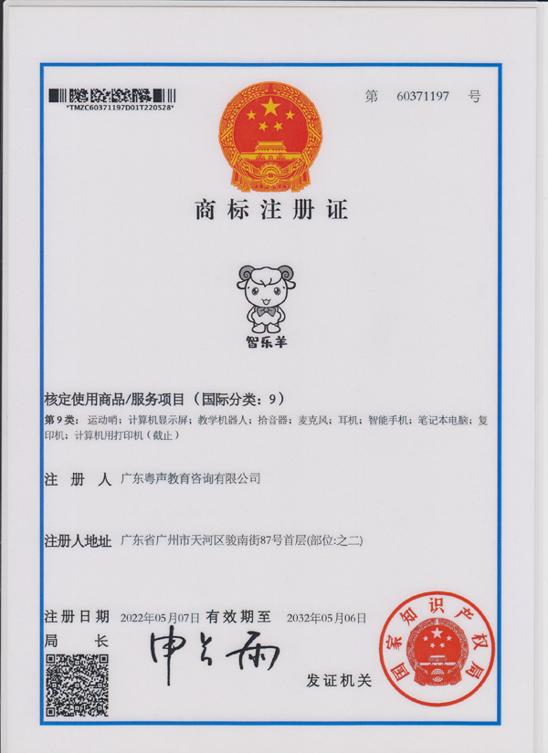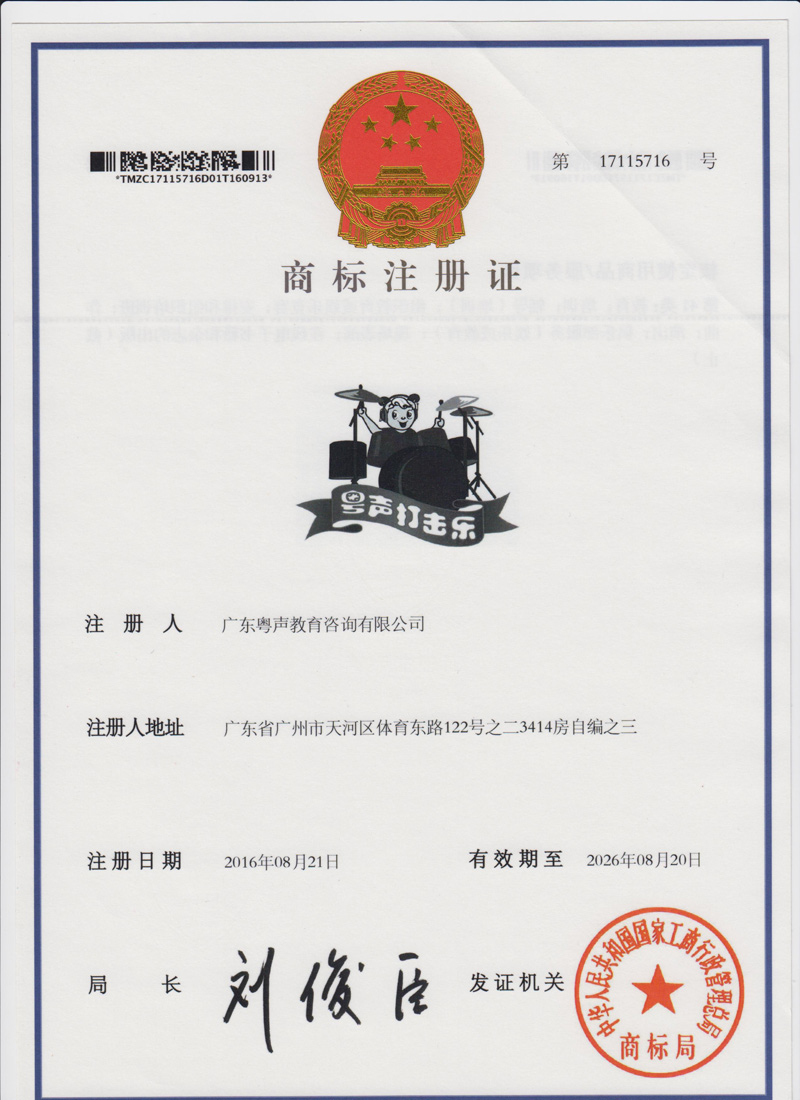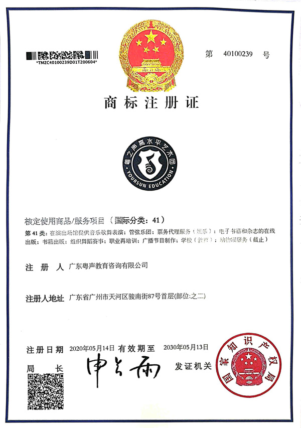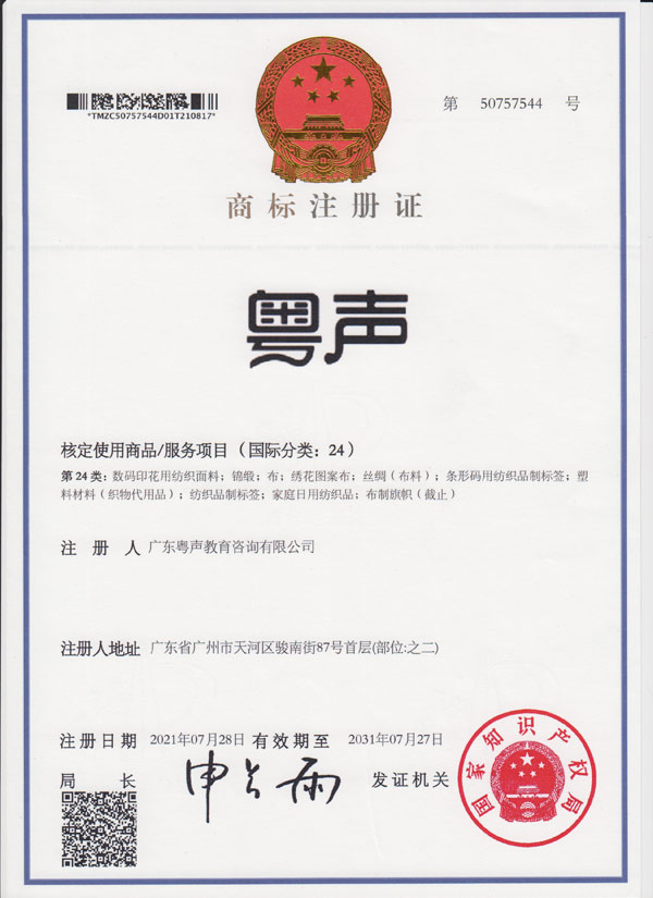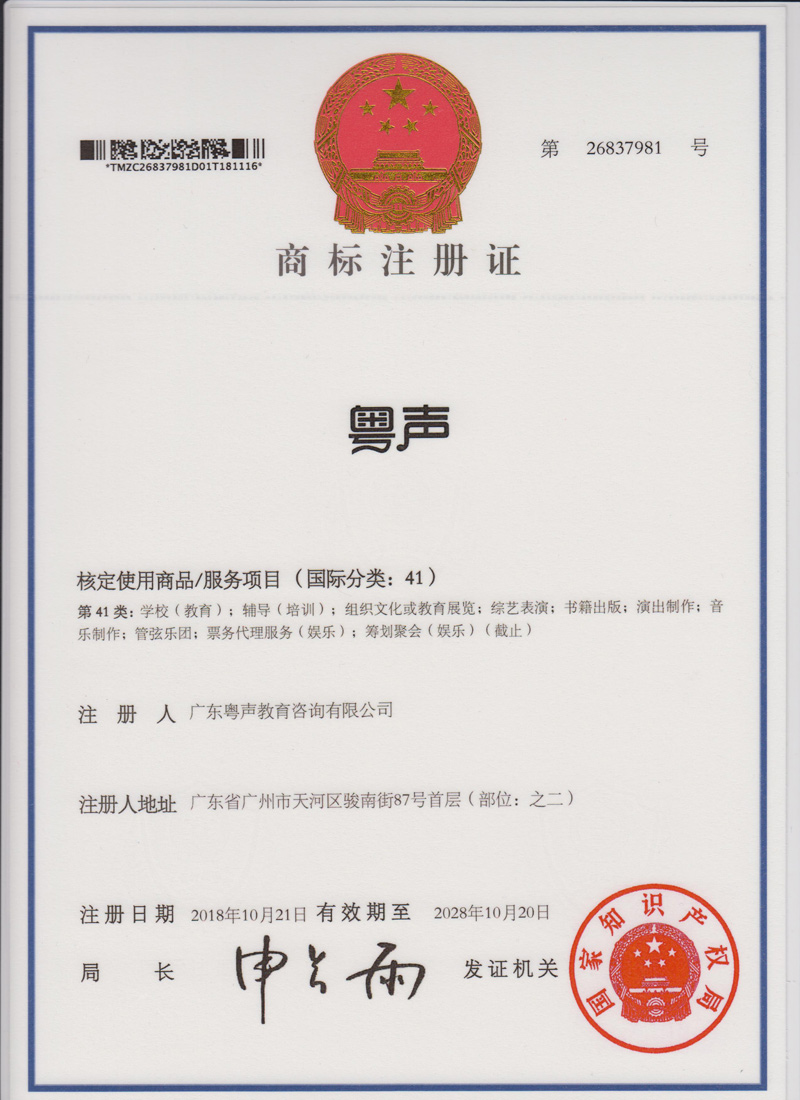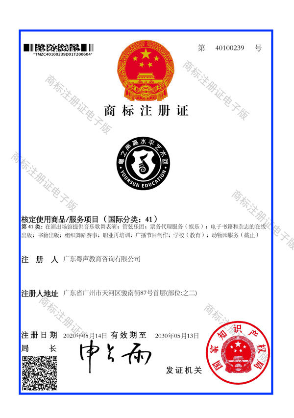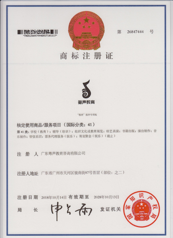 41类商标注册证--粤声教育