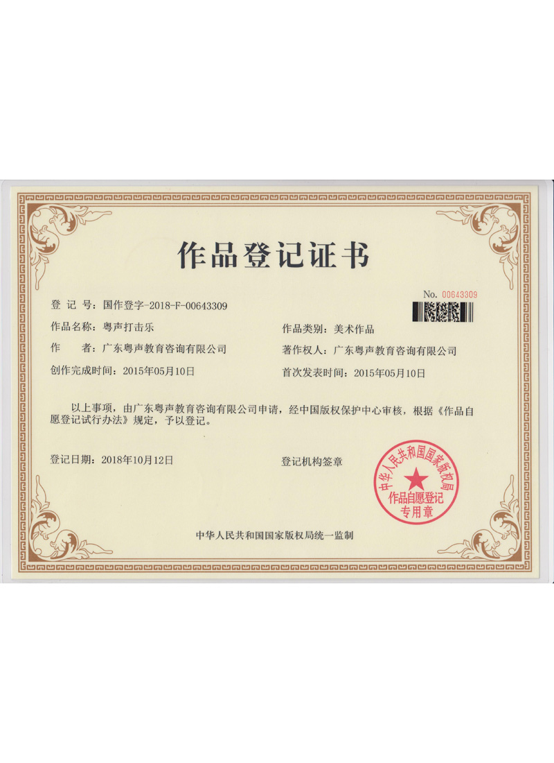 作品登记证书--粤声打击乐