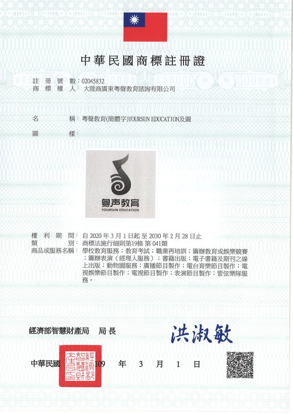 台湾商标注册证--粤声教育