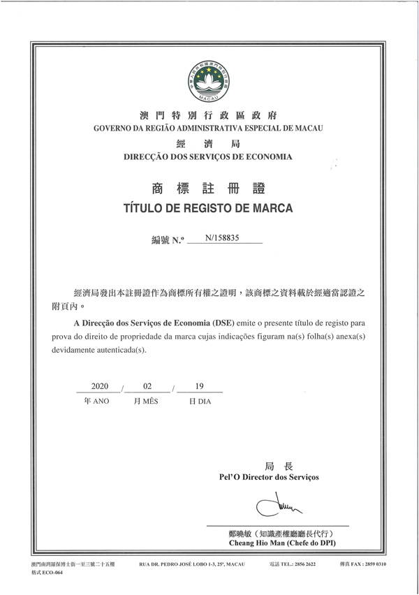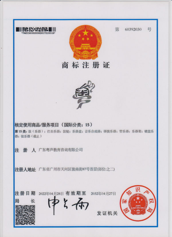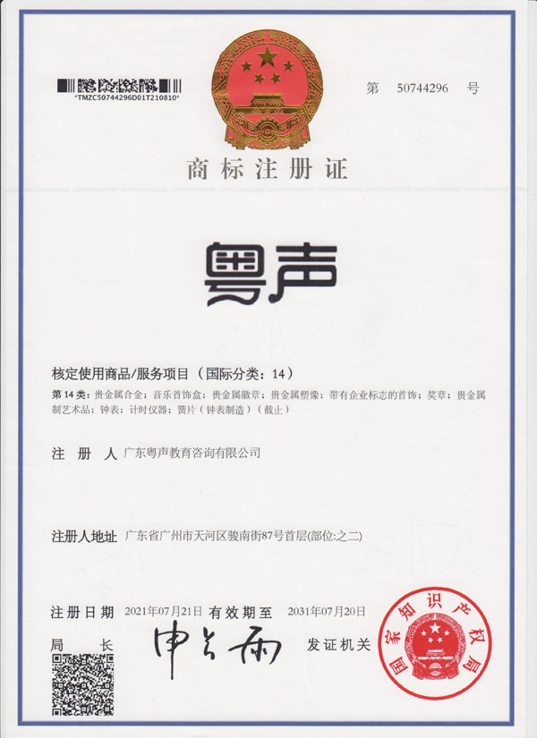 澳门商标注册证--粤声教育